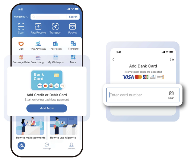 - Alipay supports international credit/debit cards. See this guide for more information.